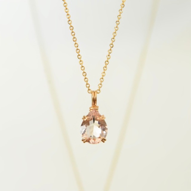 天然ゴールデンピンク モルガナイト ペアシェイプ 14kgf ワイヤーペンダント