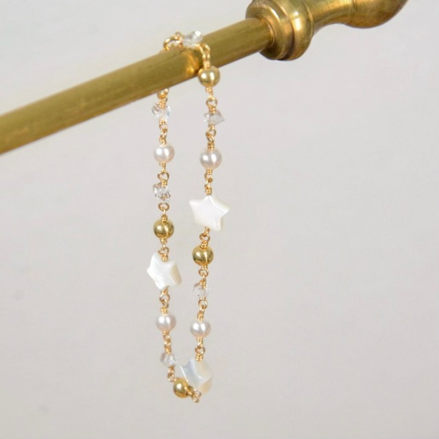 14kgf モアサナイト(シャンパン) × ステーション ペンダント ネックレス チェーンの間に14kgfメタルビーズをあしらったステーションネックレスに、モアサナイトを合わせた一粒ペンダント。 チェーンはひとつひとつ手作業で繋いでおり、繊細な仕上がりになっています。 シャンパンカラーが美しいモアサナイトは、吸い込まれそうな輝きが魅力。 存在感があり、つい見入ってしまうような煌めきをお楽しみいただけます。 モアサナイトの輝きとビーズ入りチェーンが自然と調和し、首元をほどよく華やかに見せてくれます。 【ギフト仕様について】 当ショップでは、無料でギフトラッピングを承っております。 リボンのお色もお選びいただけます。 ご希望の方は、商品ページのオプションよりリボンカラーをご選択ください。 ※手提げ袋は付属しておりません。 【Detail】 ♢チェーン 長さ約40.6cm 小豆チェーン 14kgf 幅1.2mm、メタルビーズ 14kgf 直径2mm (ビーズの間隔はそれぞれ約1.7cm) ♢ モアサナイト 約6mm シャンパン(石枠はサージカルステンレスを使用) ♢ 石枠以外の金属はすべて14kgf(ヒキワ、プレート刻印あり) ▽モアサナイト モアサナイトはダイヤモンドに似た見た目と強い輝きを放つことが魅力です。 自然界に天然モアサナイトも存在しますが、とても希少で一般的に流通しているのは人工的に作られた合成石です。 この合成モアサナイトの誕生によりモアサナイトは身近な存在になりました。 ダイヤモンドよりも皮脂や汚れが付着しにくいため曇りにくく、宝石の中ではダイヤモンドに次ぐ硬さもあるため、お手入れしやすく普段使いにおすすめです。