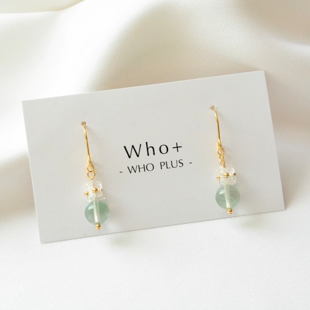 14kgf グリーンアベンチュリン × ホワイトトパーズ チェーン ピアス/イヤリング