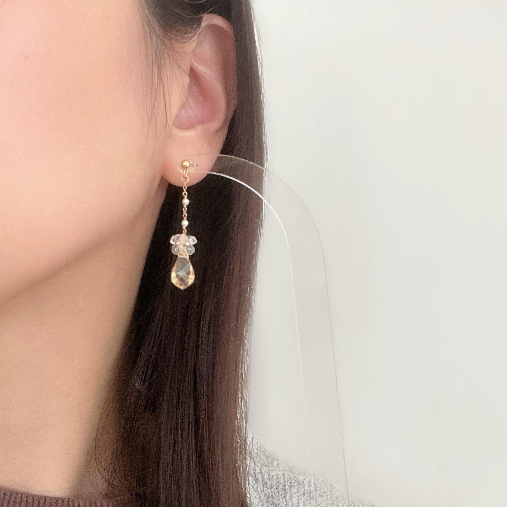 シトリンが光を受けて美しく輝き、そのイエローがアクセントになり耳元に華やかさをプラスします。