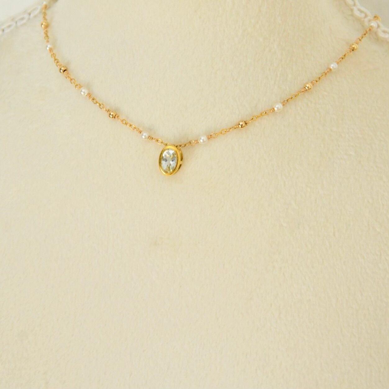 クリスタルパールとは、クリスタルを核にして真珠のように加工したものです。繊細なパールコーティングが施されることで表面はキメ細かく光の反射により美しい輝きを放ちます。