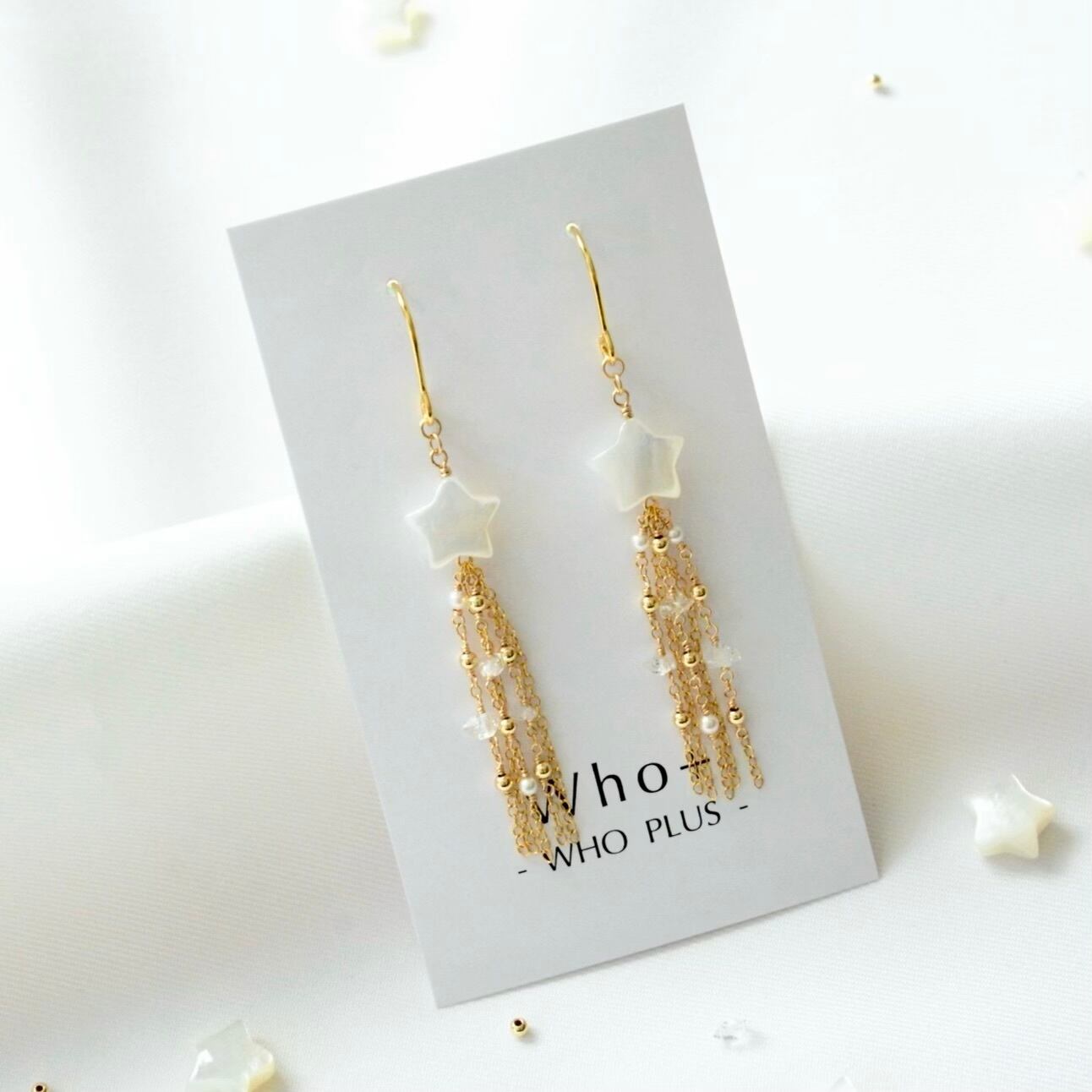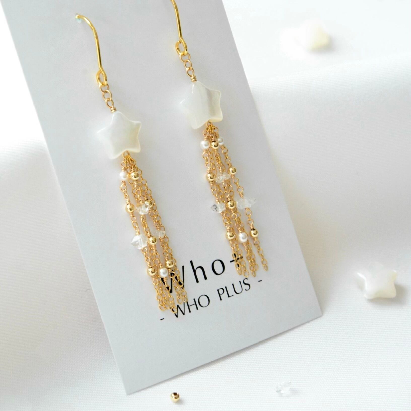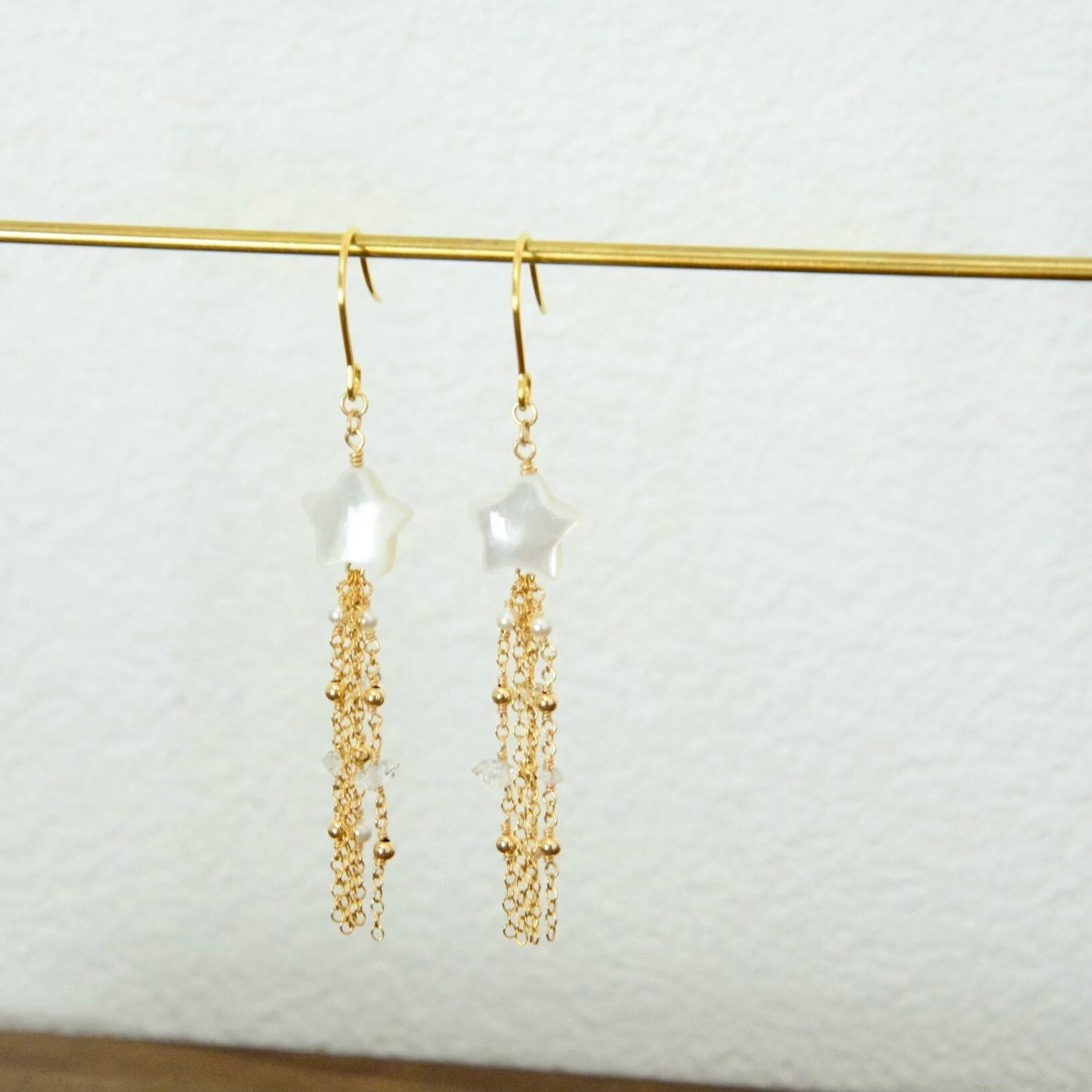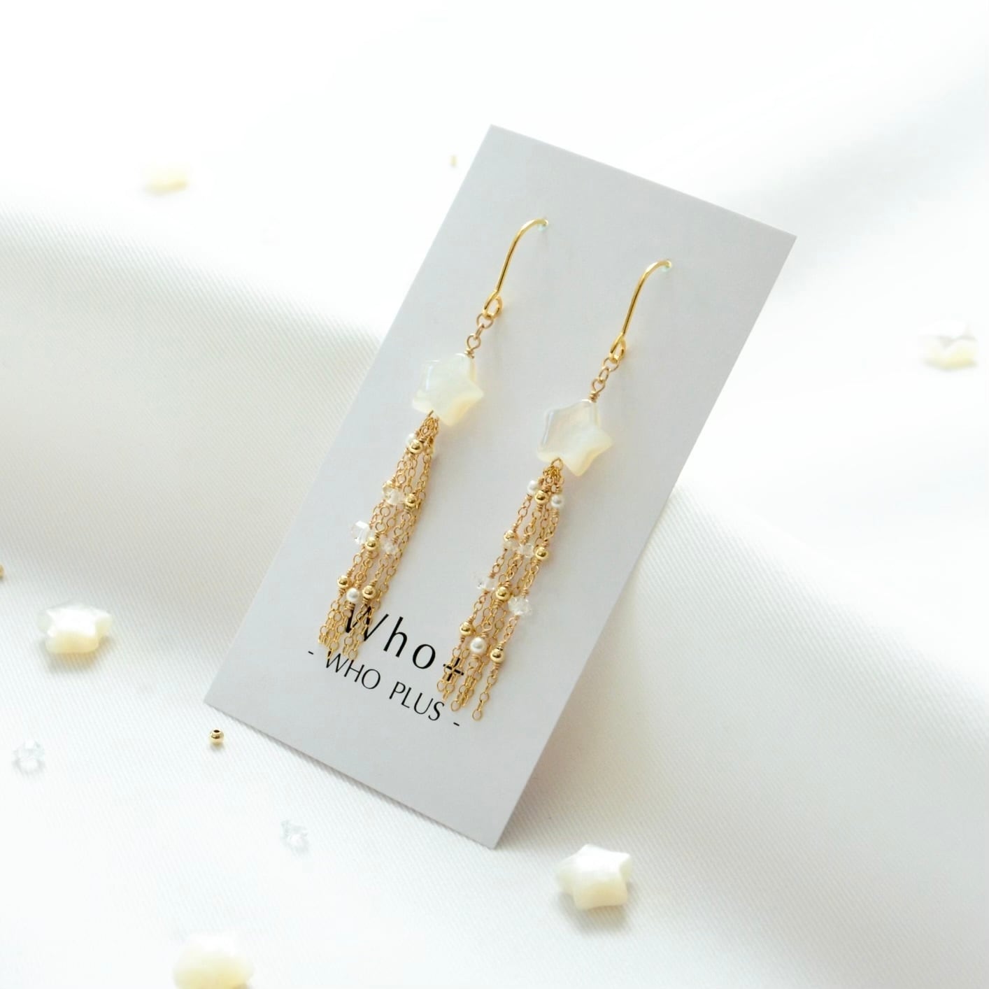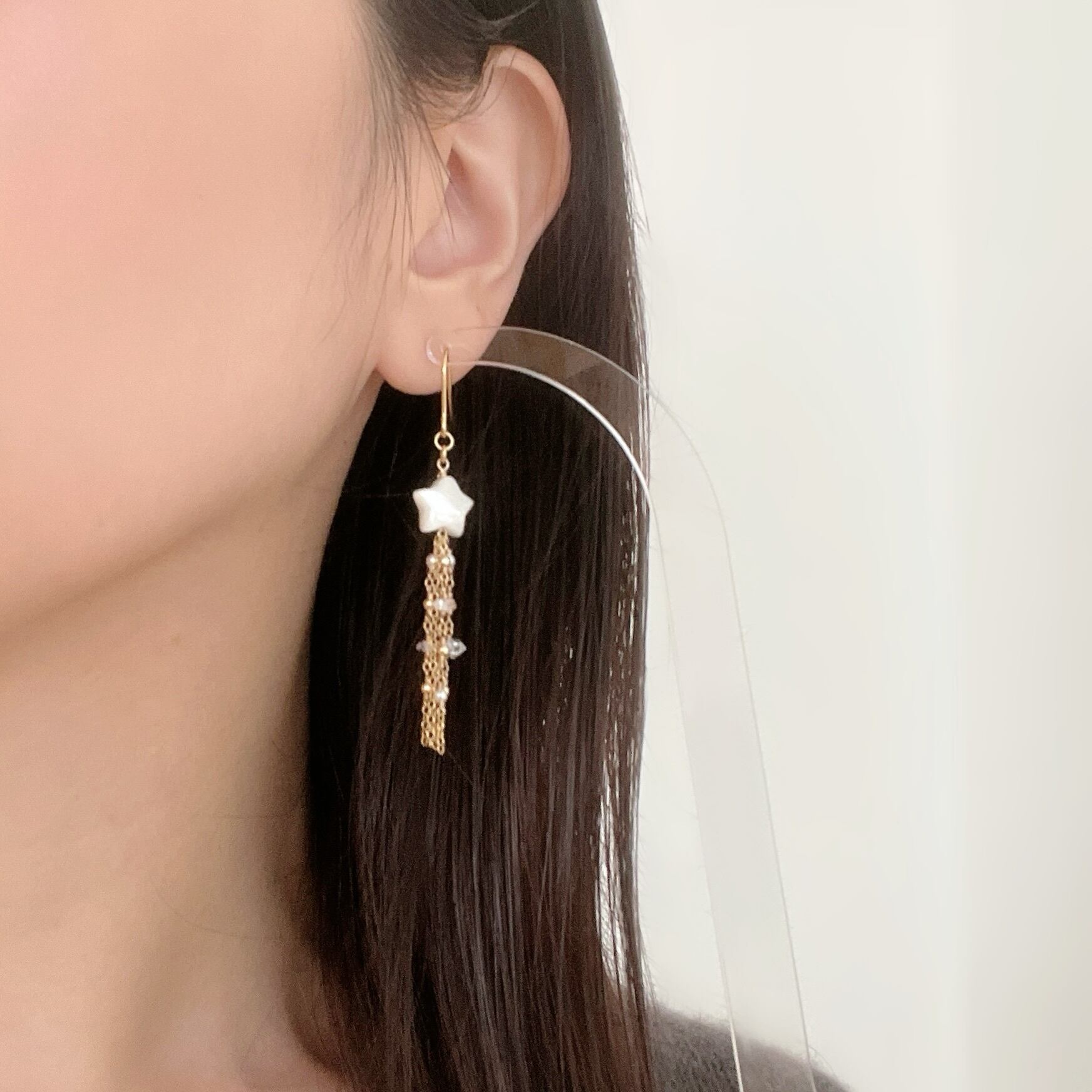 揺れるたびに心がときめく、星降る夜のどこか幻想的でやさしい空気をまとうような、そんな気分にさせてくれるアクセサリーです。