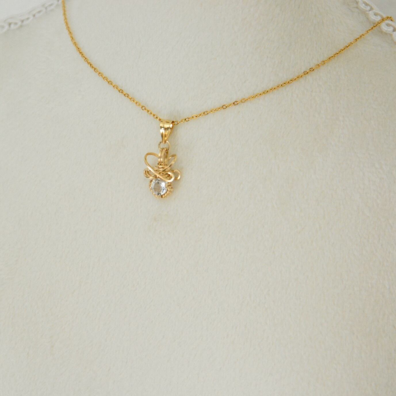 透明感あふれるホワイトトパーズを14kgfワイヤーで繊細に包み込んだ一粒ペンダントです。