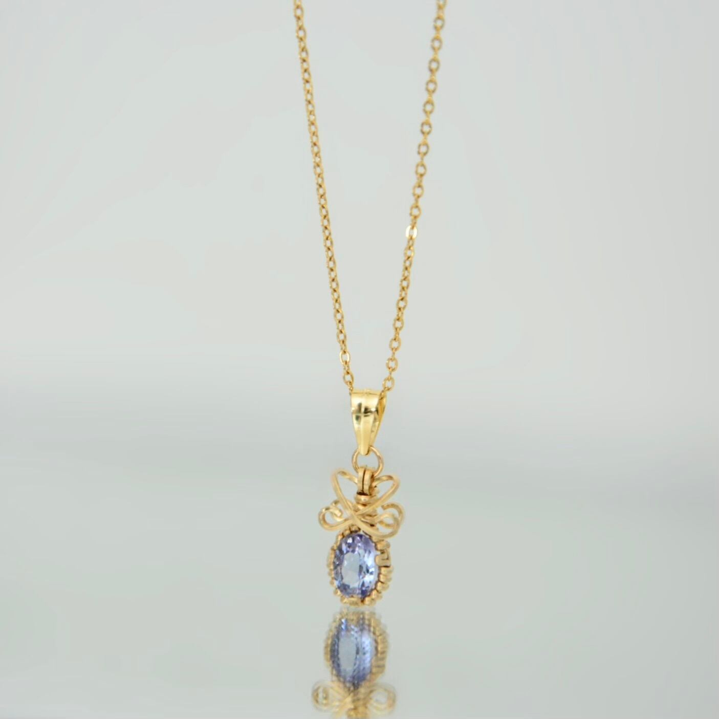 神秘的な深い青が印象的なタンザナイトの一粒ペンダントです。