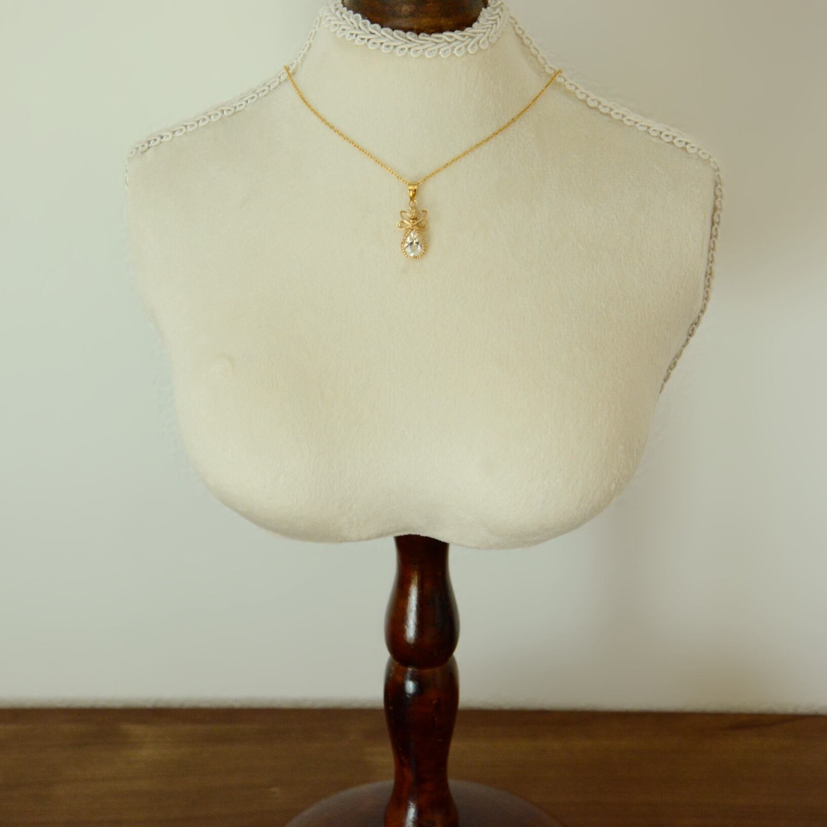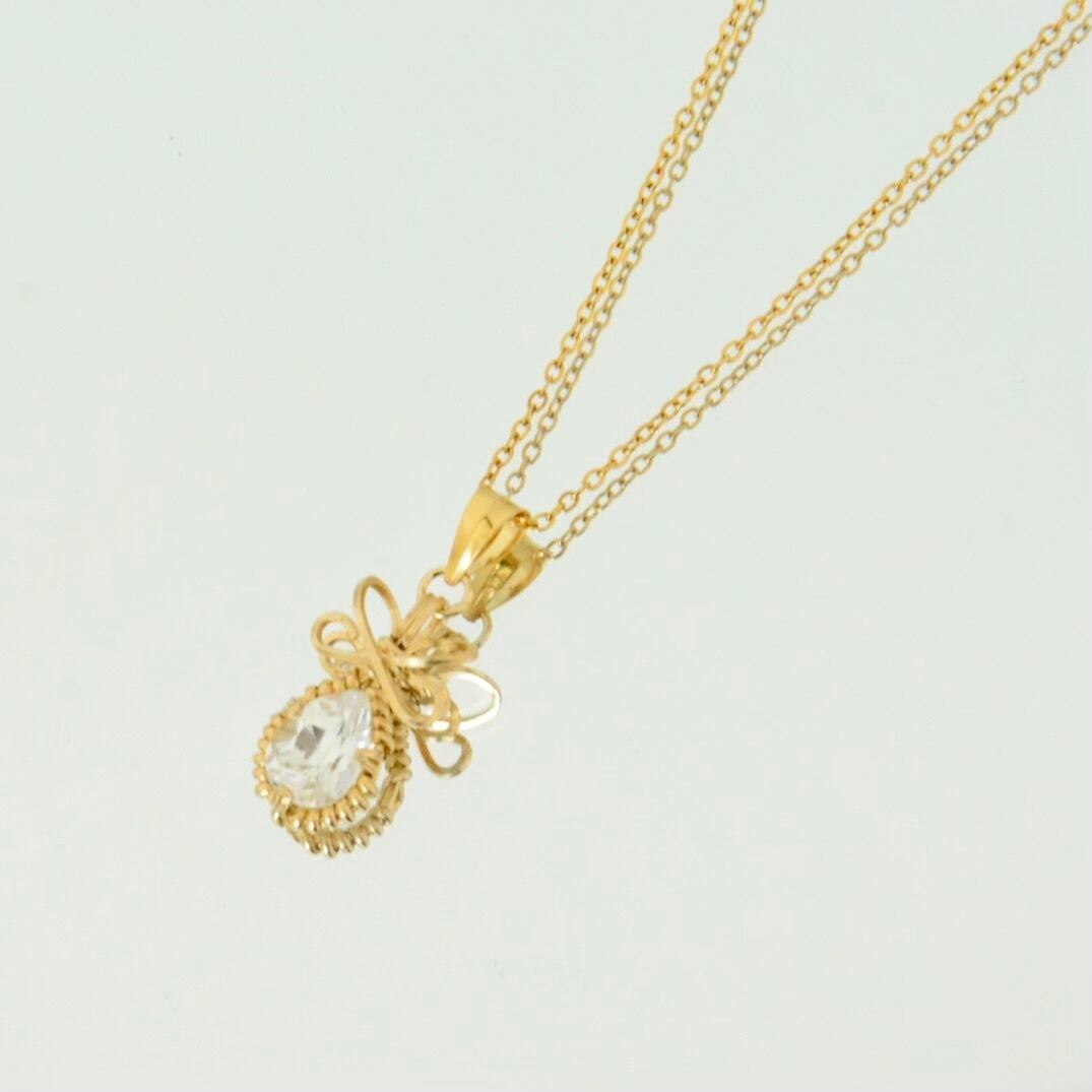 澄んだ輝きが美しいホワイトトパーズを14kgfワイヤーで丁寧に包み込んだ一粒ペンダント。