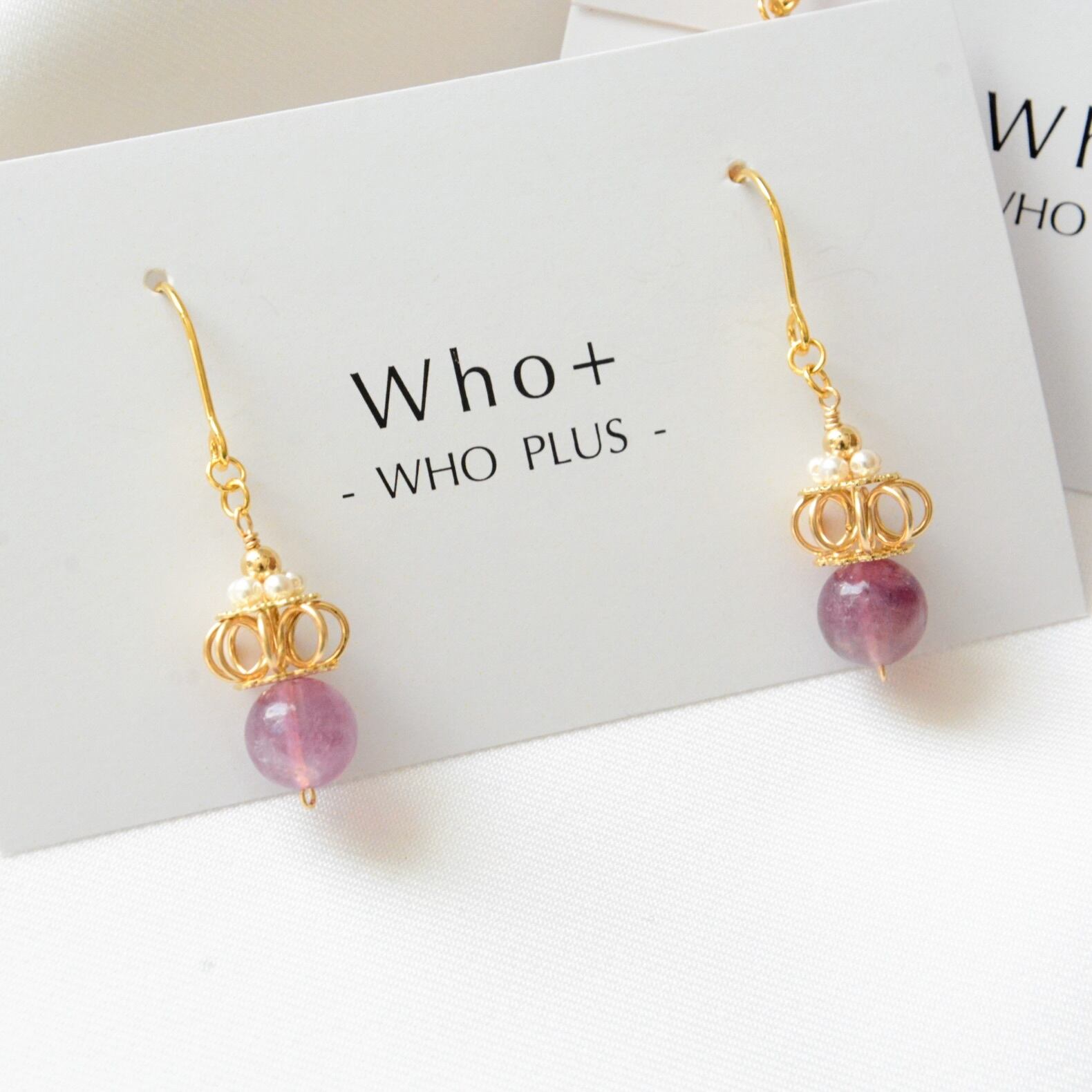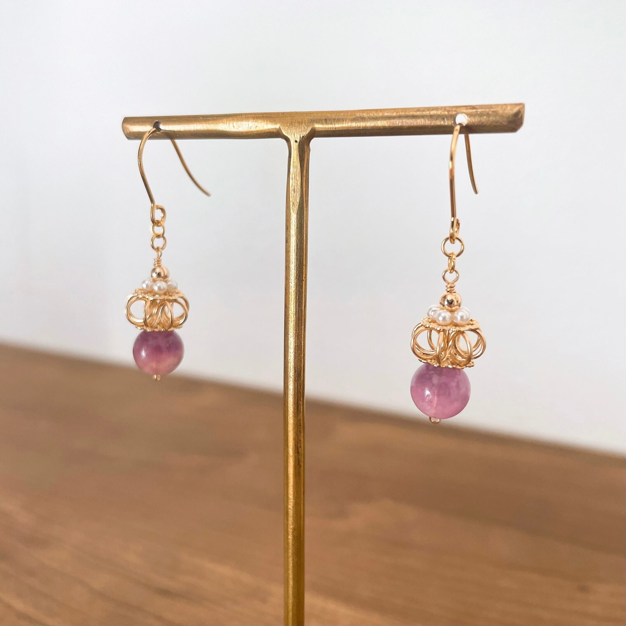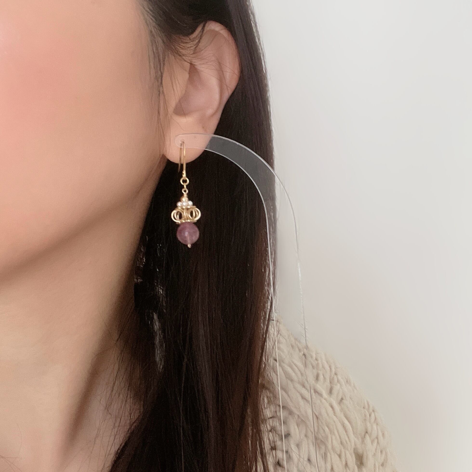 14kgf パープルフローライト 王冠デザイン ピアス/イヤリング