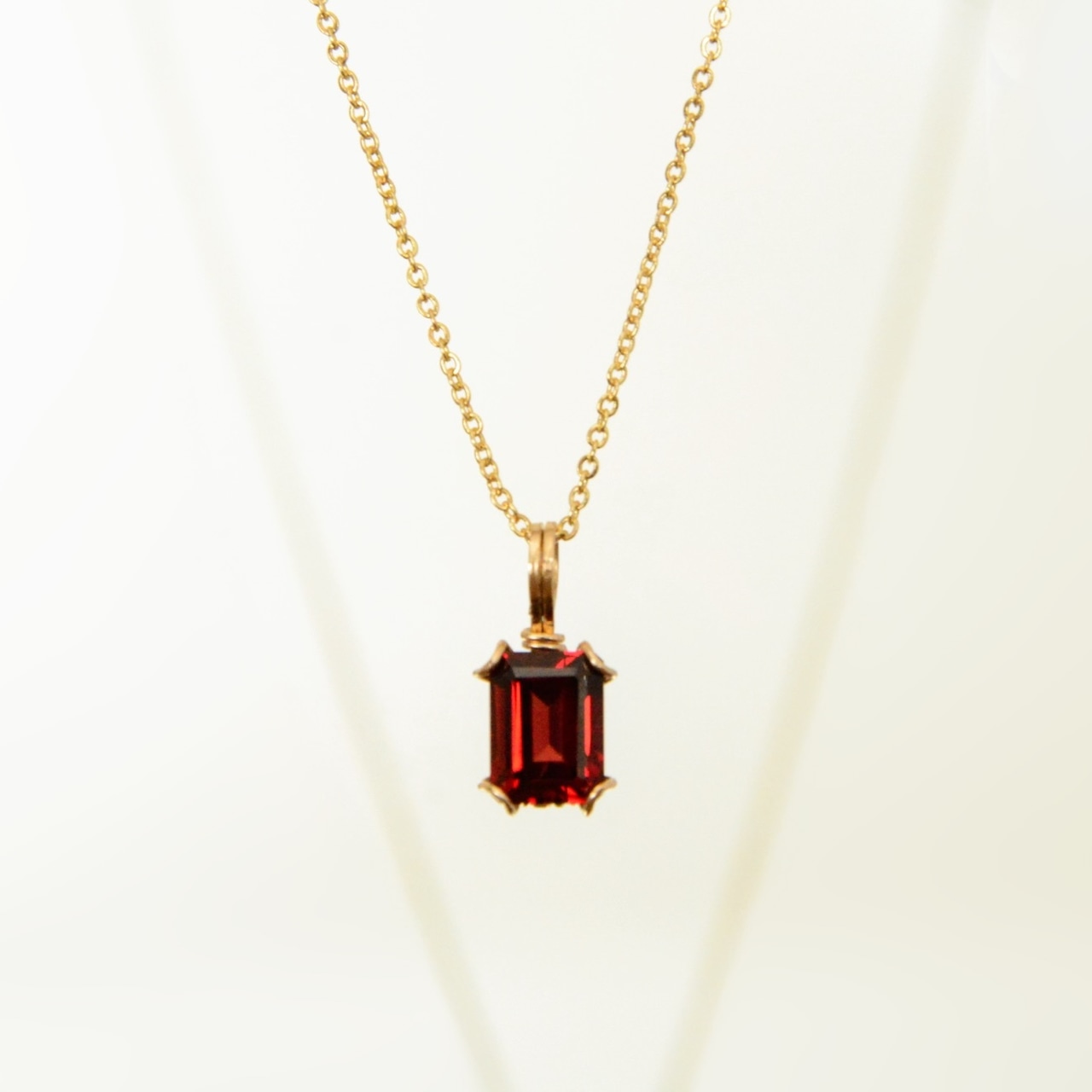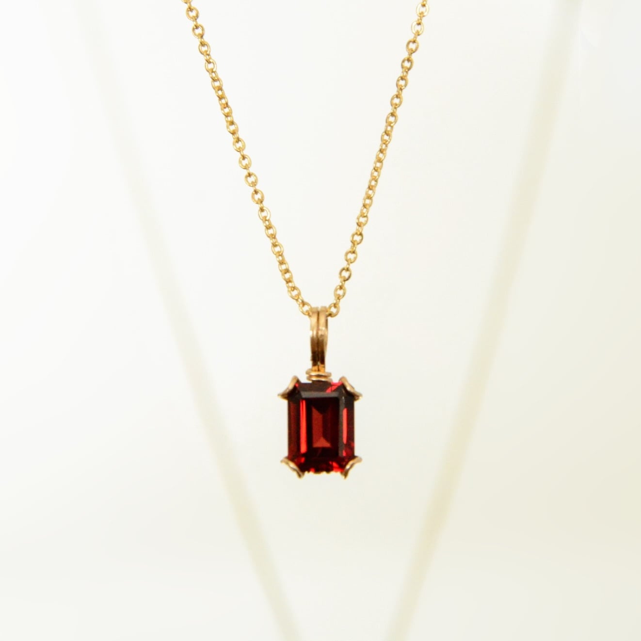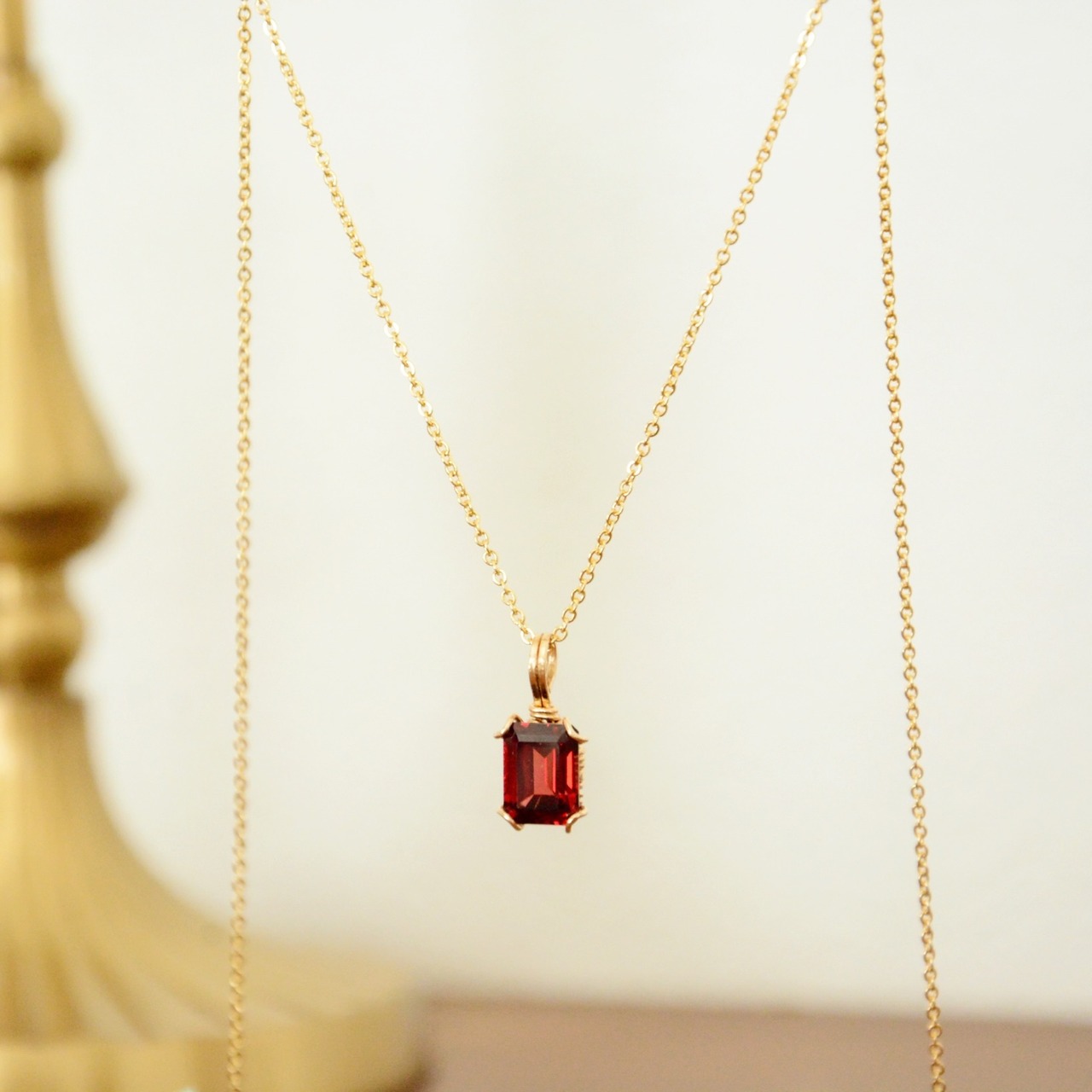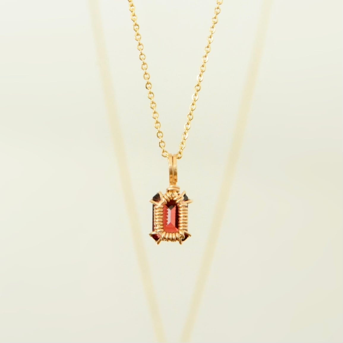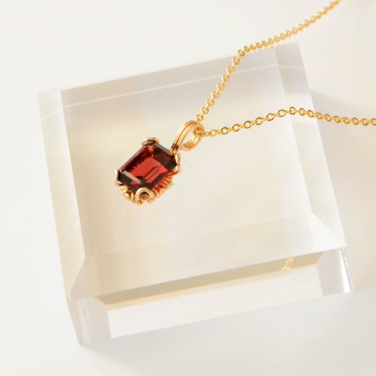 深みのある美しい赤色が魅力のモザンビーク産ガーネットを使用したワイヤーペンダント。
