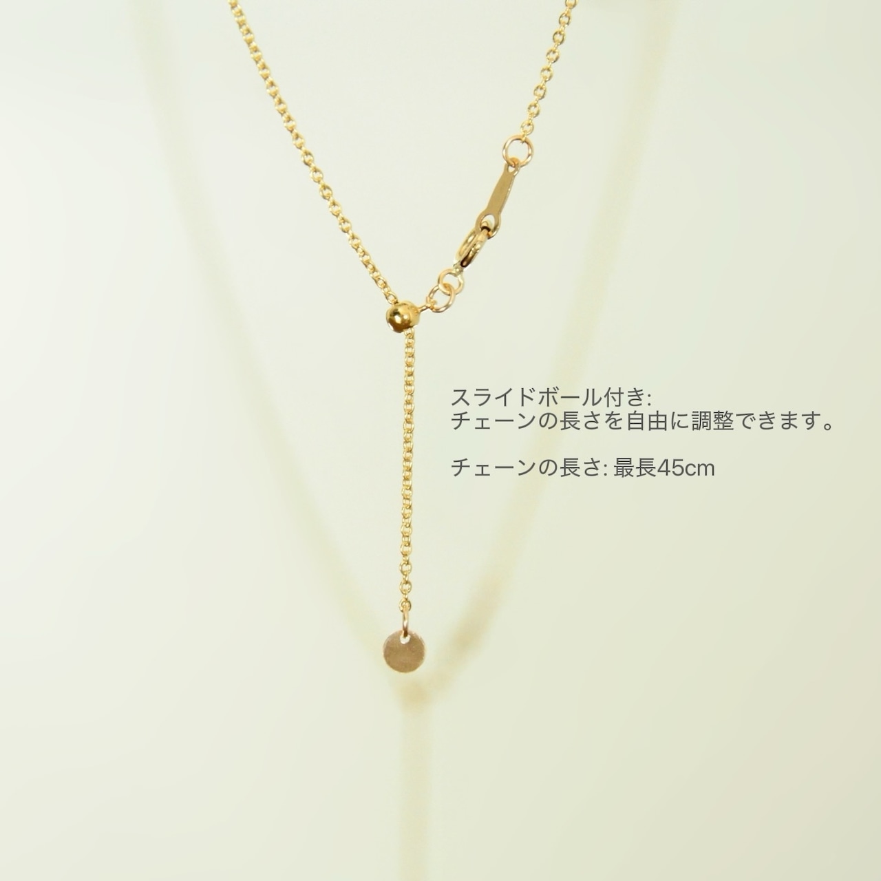 チェーンにはスライドボールを使用し、お洋服やその日の気分に合わせて長さを自由に調整してお楽しみいただけます。