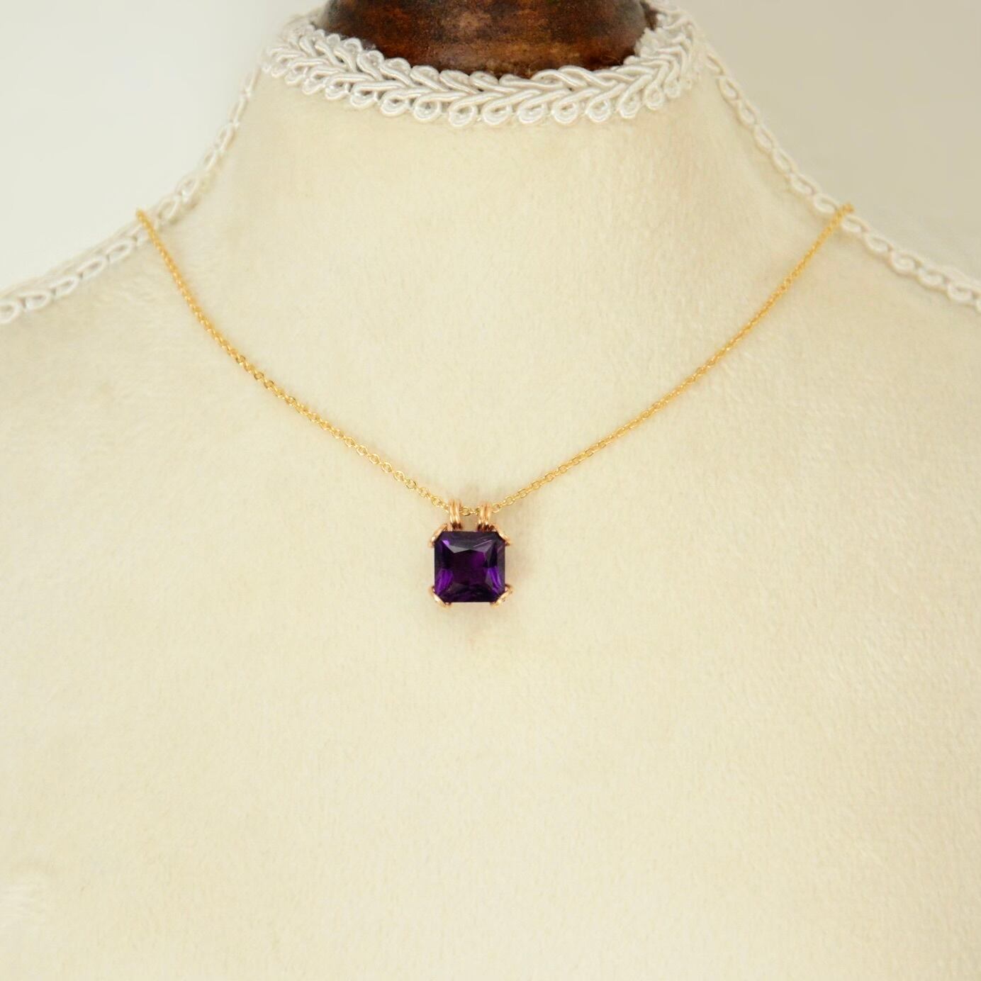 大粒で濃い色合いのアメシストは、胸元にほどよい存在感と上品さを添えてくれます。