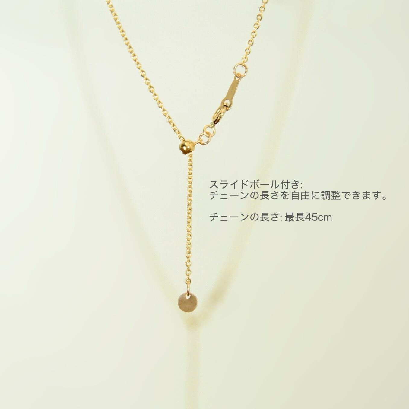 チェーンにはスライドボールを使用し、お洋服やその日の気分に合わせて長さを自由に調整可能です。