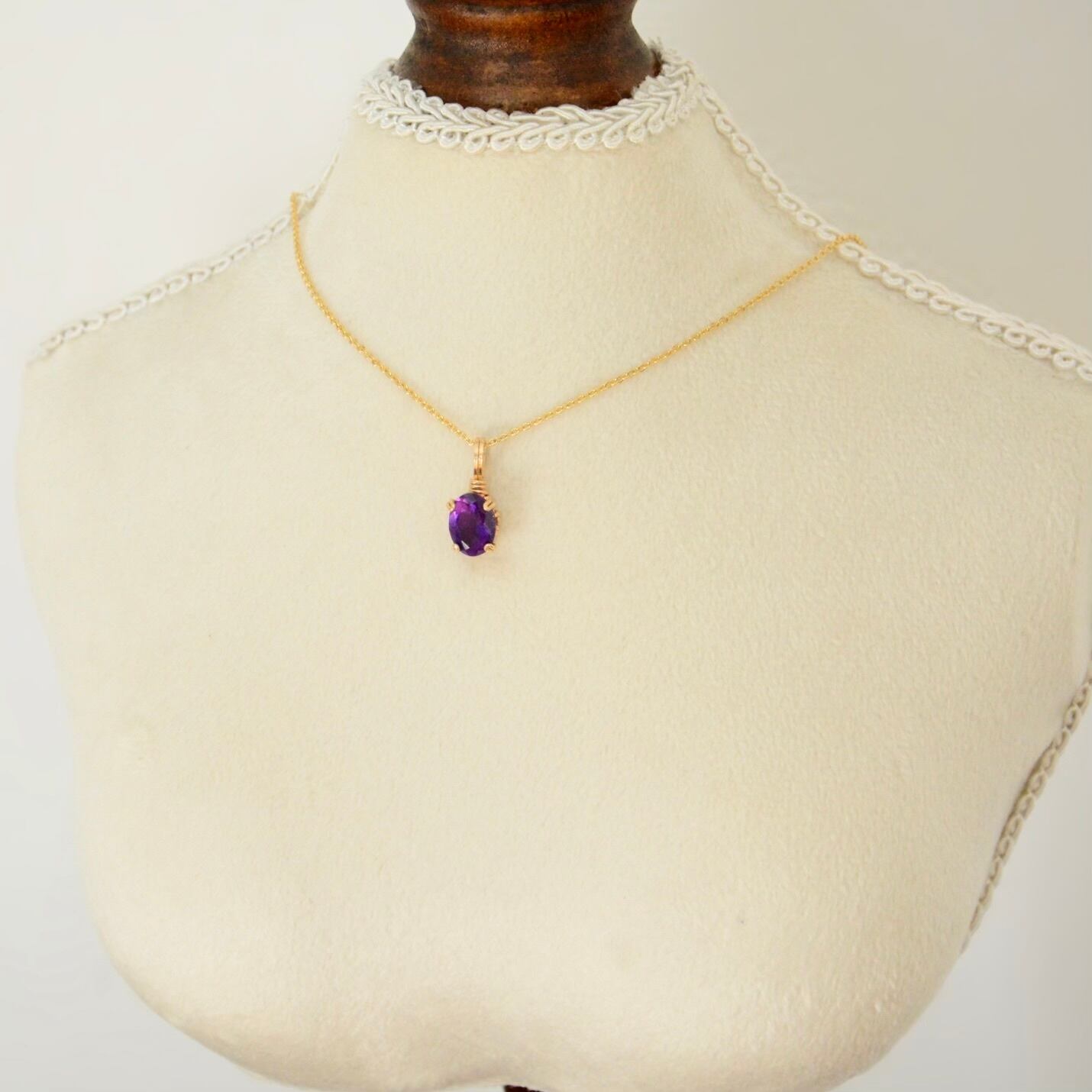 ロイヤルパープル アメシスト オーバルカット 14kgf ワイヤーペンダント