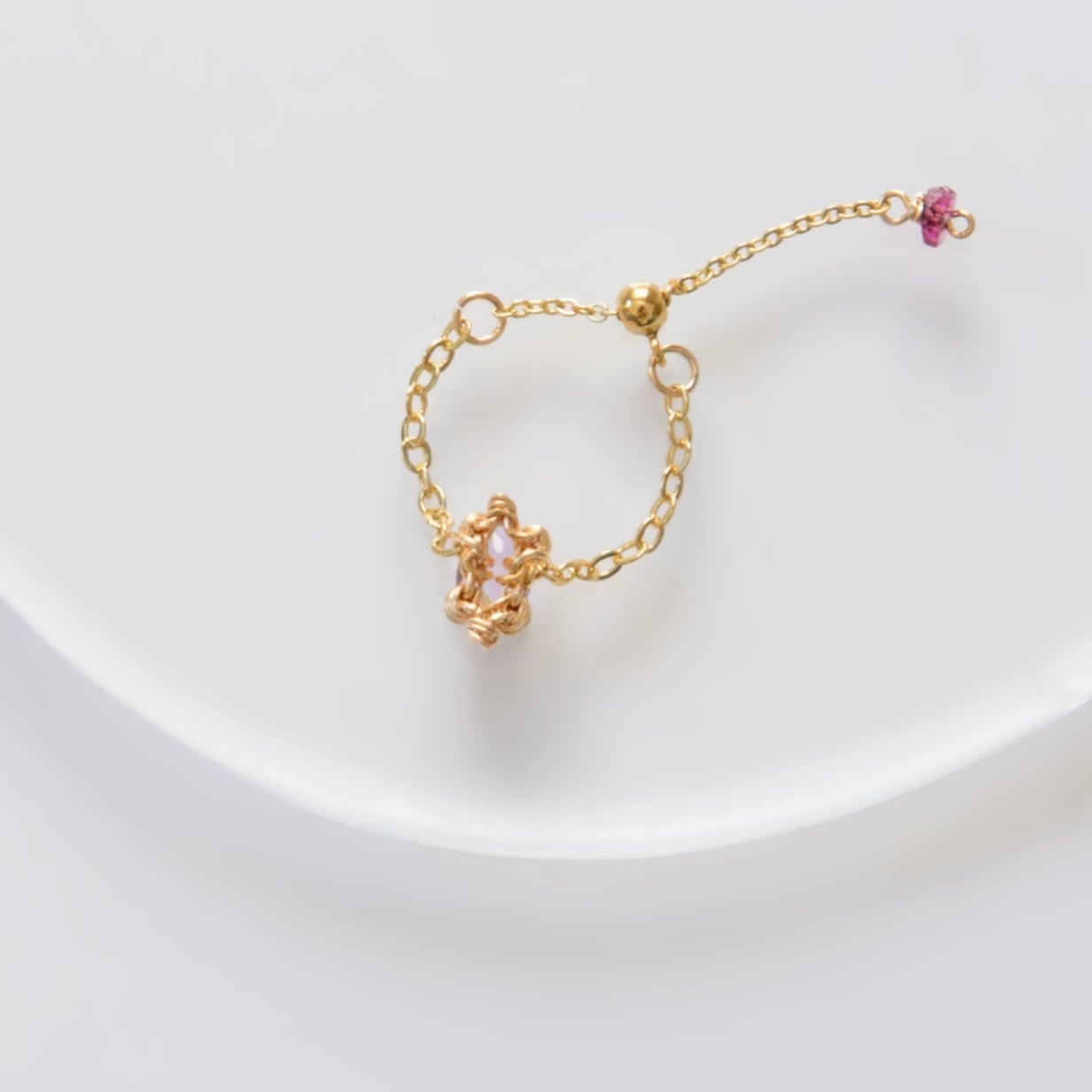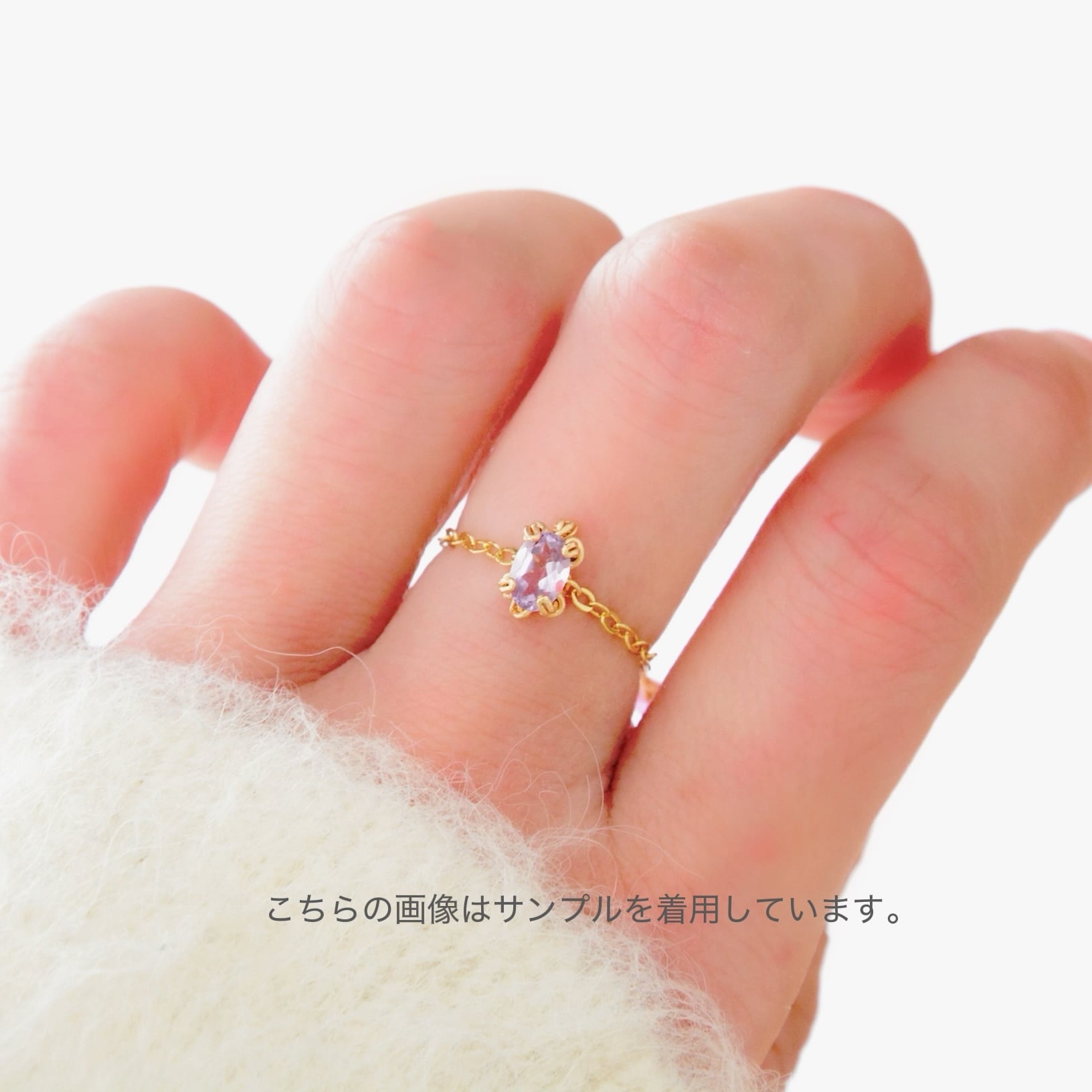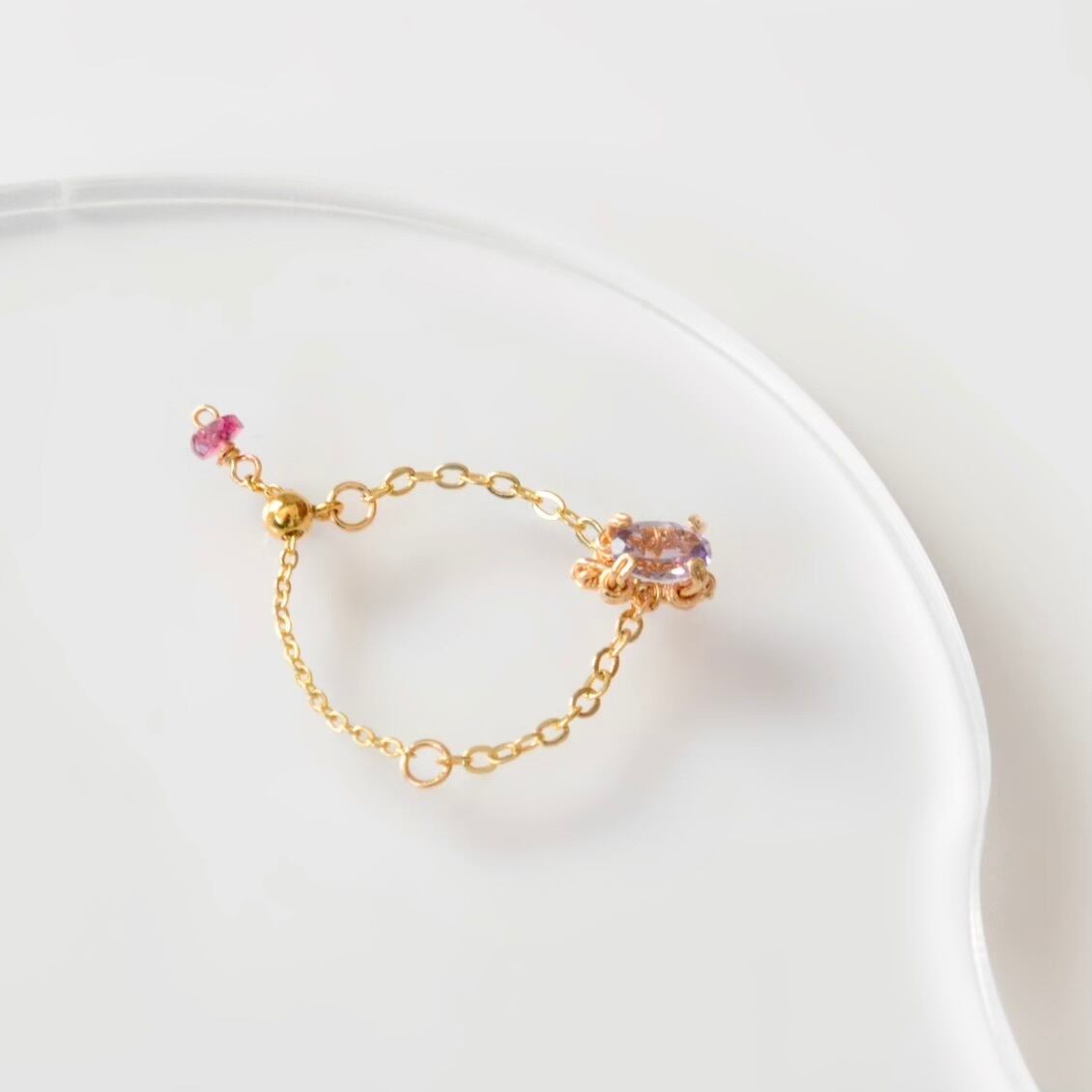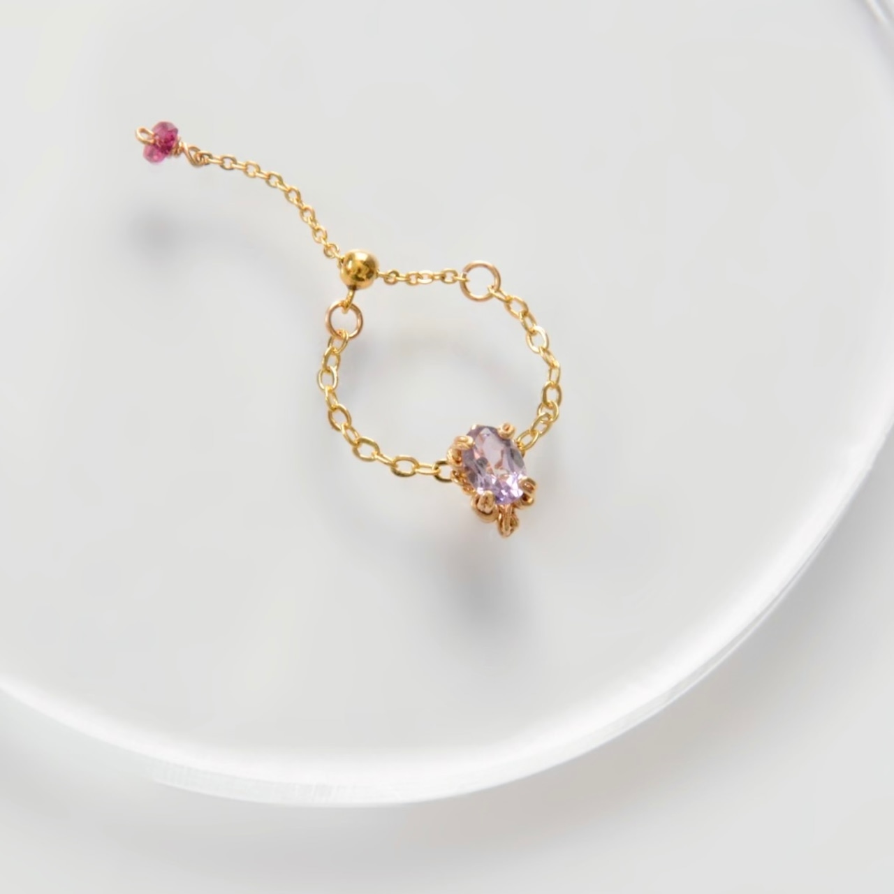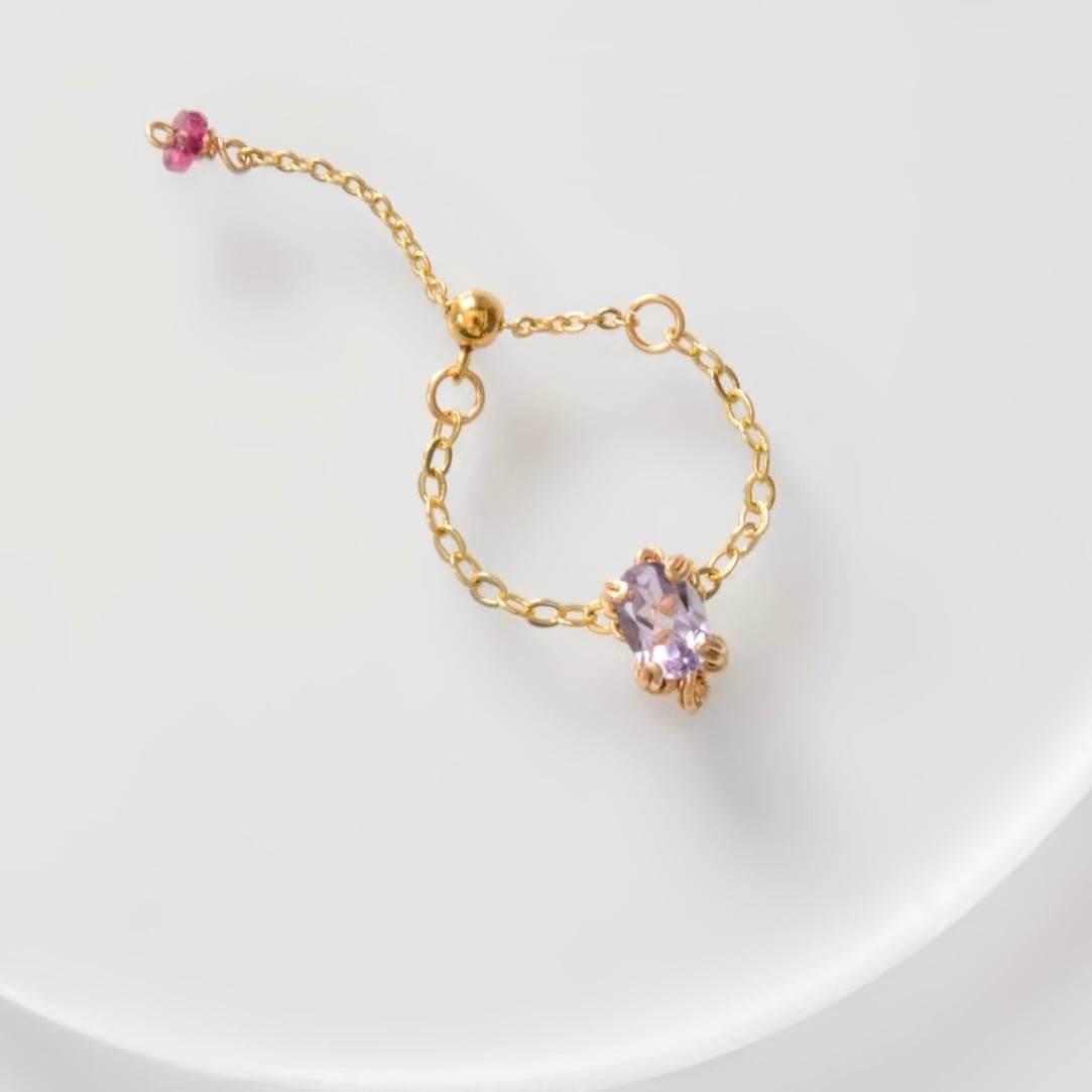 やさしい紫色が美しいアメシストをあしらったチェーンリング。