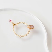 先端にはボタンカットのピンクトルマリンを一粒あしらい、程よい彩りをプラスしました。